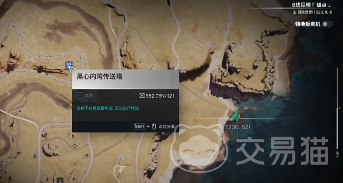首先来到“孤狼荒原”,找到“黑心内湾传送塔”,然后右下角临近海边的地方,坐标大约是(7230,82),在一个类似码头亭子的地方,来到这边会发现有一个钓鱼点,还有NPC“玛德琳”。