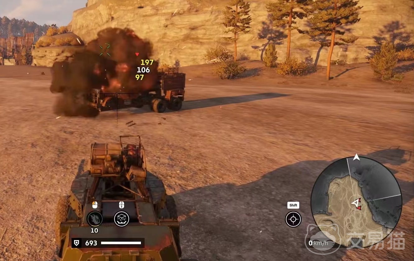 它的特性是可以飞发射出三个飞滚的爆炸轮胎,命中敌人后爆炸,爆炸轮胎存在8秒钟,造成的伤害类型为爆炸伤害,发射时间0.5秒,装填时间5秒钟。在实战中拥有较好的爆发性能,只要可以顺利贴住对方的脸,就能够重创对手。