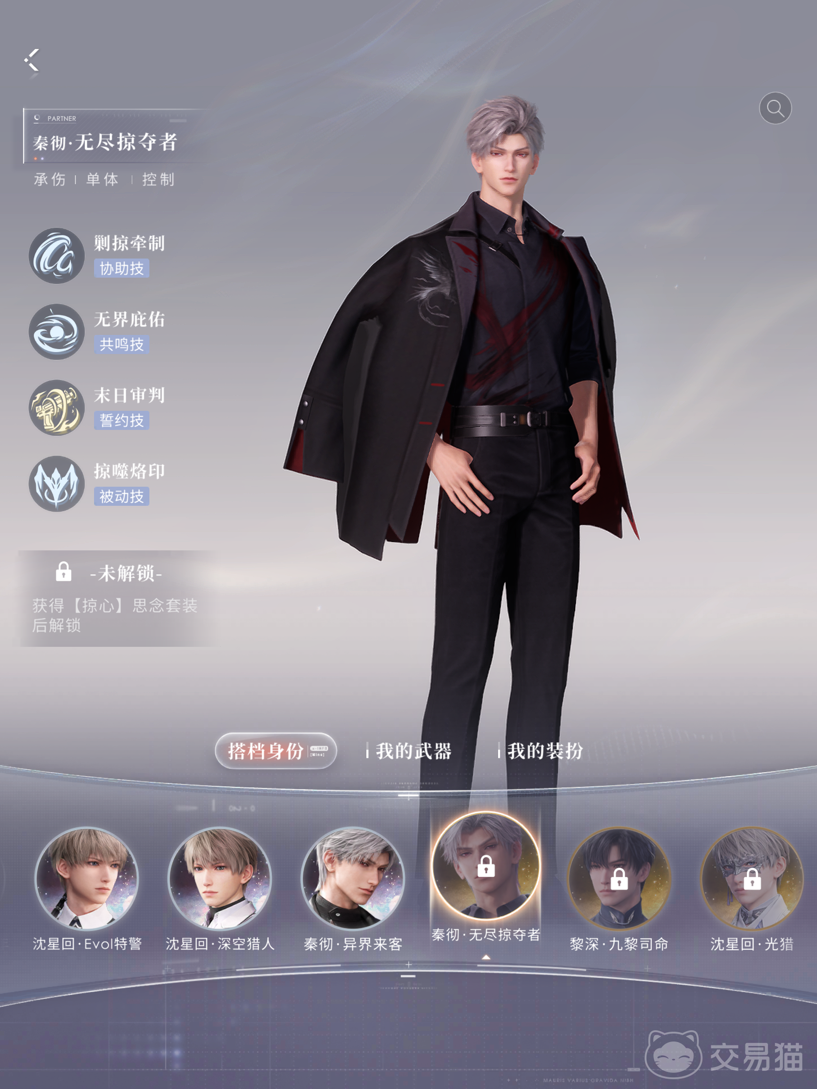 秦彻的作战风格是近身格斗与远程枪击结合,他的作战风格体验在日卡搭档身份上,目前秦彻有上线的日卡身份套装有,分别是五星无尽掠夺者、四星异界行者、以及三星的散卡。