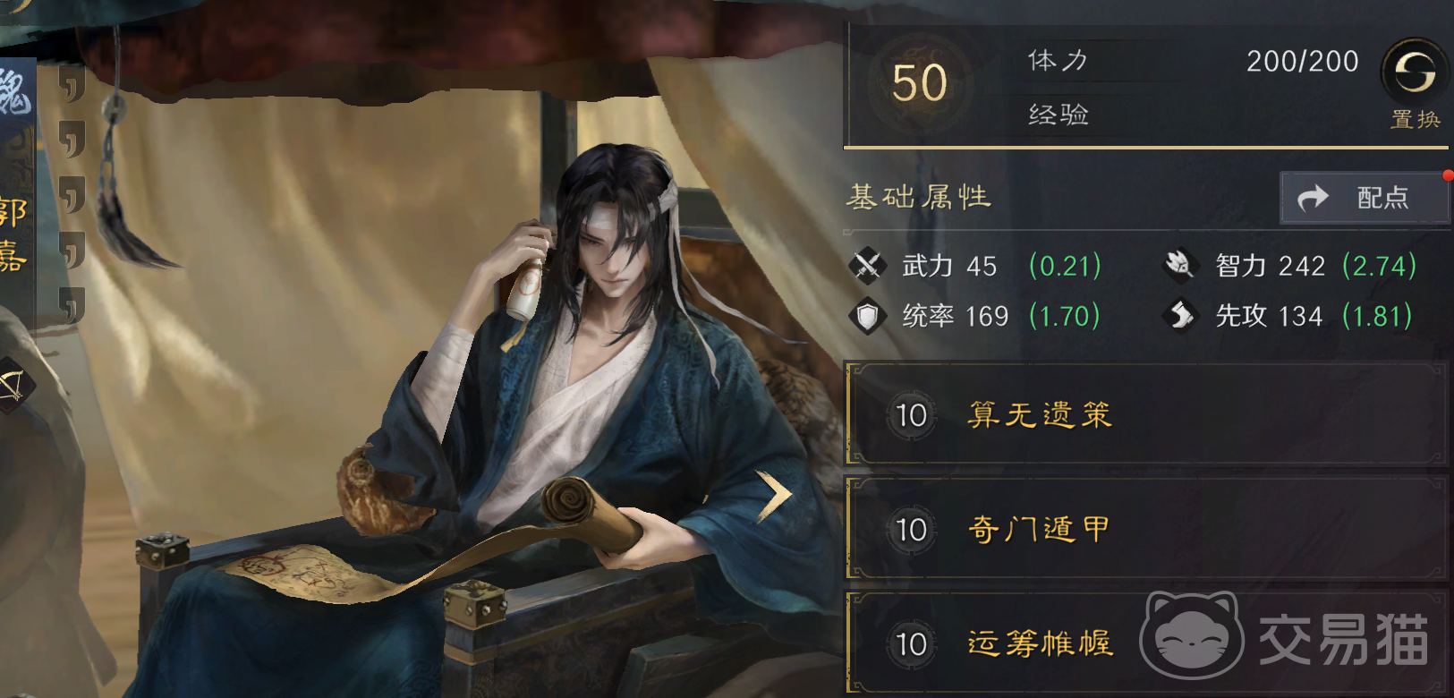 贾诩在《三国谋定天下》中以其狡诈的计谋和强大的辅助能力著称。他的战法【诡道玄机】不仅能够在攻击时造成混乱效果,还能在特定条件下增加谋略伤害和恢复自身兵力。这使得贾诩在战斗中既能作为输出点,又能承担一定的辅助任务。在天灾配置中,贾诩可以作为重要的辅助角色,与曹操、郭嘉等武将共同组成强大的天灾队。贾诩的混乱效果和谋略伤害可以与天灾配置的伤害机制形成互补,进一步提升队伍的战斗力。