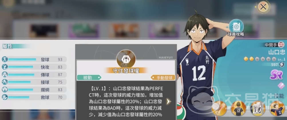 其次就是月岛萤、山口忠和西谷夕组合,月岛萤在拦网方面表现还是很出色的,是阵容的防守核心,山口忠拥有稳定的进攻能力,适合担任接应的位置,西谷夕具备多重技能,包括守护神、出色的自由球员等,能在防守时发挥重要作用。