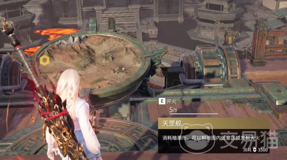 除了熔岩仪,在望山坞的北部区域有一艘非常大的战舰,名字叫做天罡舰,用钩锁上去以后里面有很多资源,而天罡舰自身携带的大炮也可以被打架使用,需要花费3500暗潮币就可以在全图打一次,掉落的红色炮弹会对区域内的敌人造成不少伤害,而且该炮弹和熔岩仪的机制一样,落地以后不会伤害发射的玩家,每一局可以打五次。