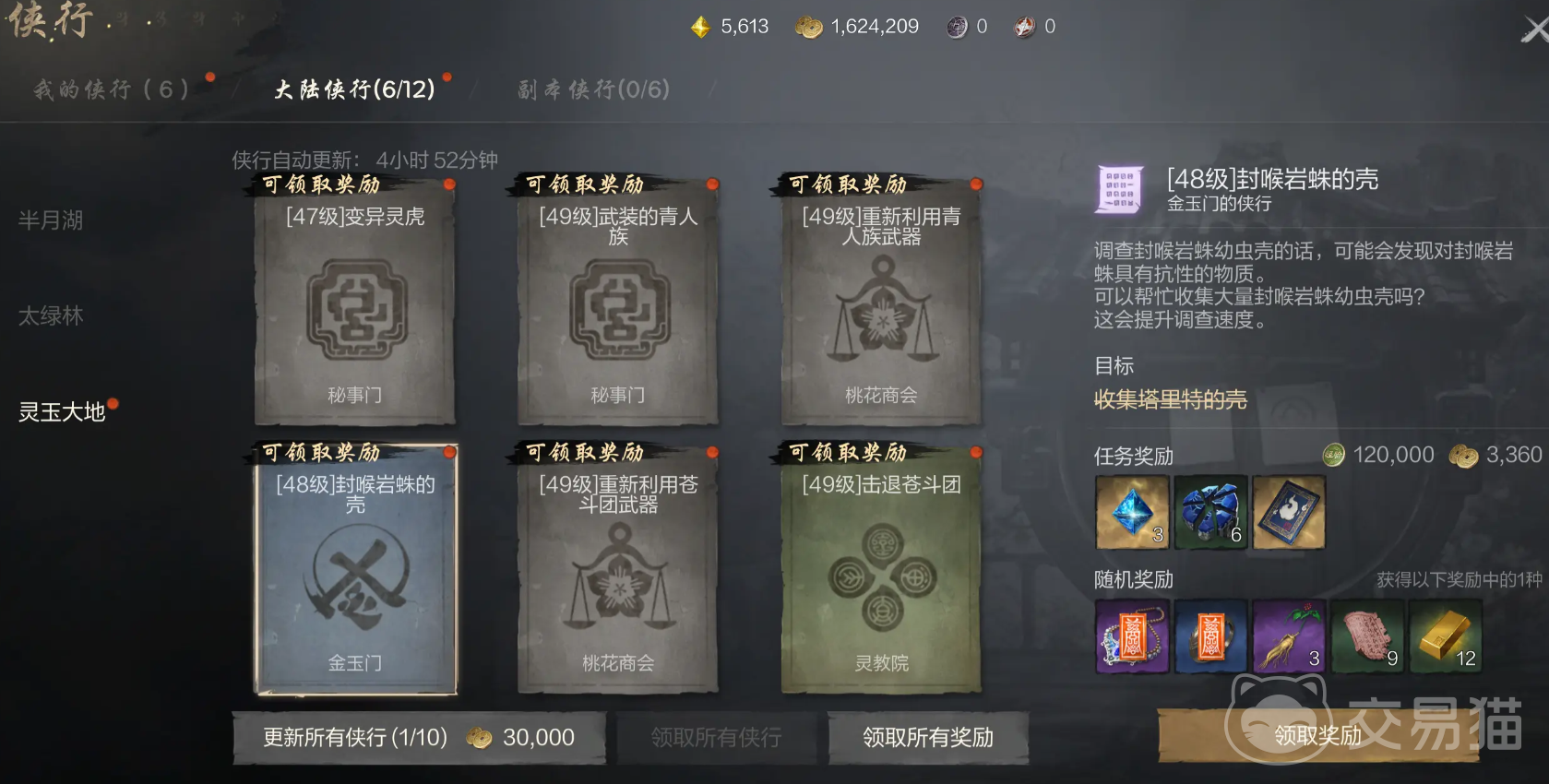 侠行任务其实就是每日任务,每天都需要完成,玩家一天可以接取12次,接受的次数会在第二天的四点整进行刷新,大家尽量在该时间段前将每日任务给做完,完成侠行任务也能得到经验值、养成材料等奖励,不过该任务的经验值奖励会根据地区和任务品质而定,玩家当前所处的地区越高级、任务的品质越高,能得到经验值也就越多。
