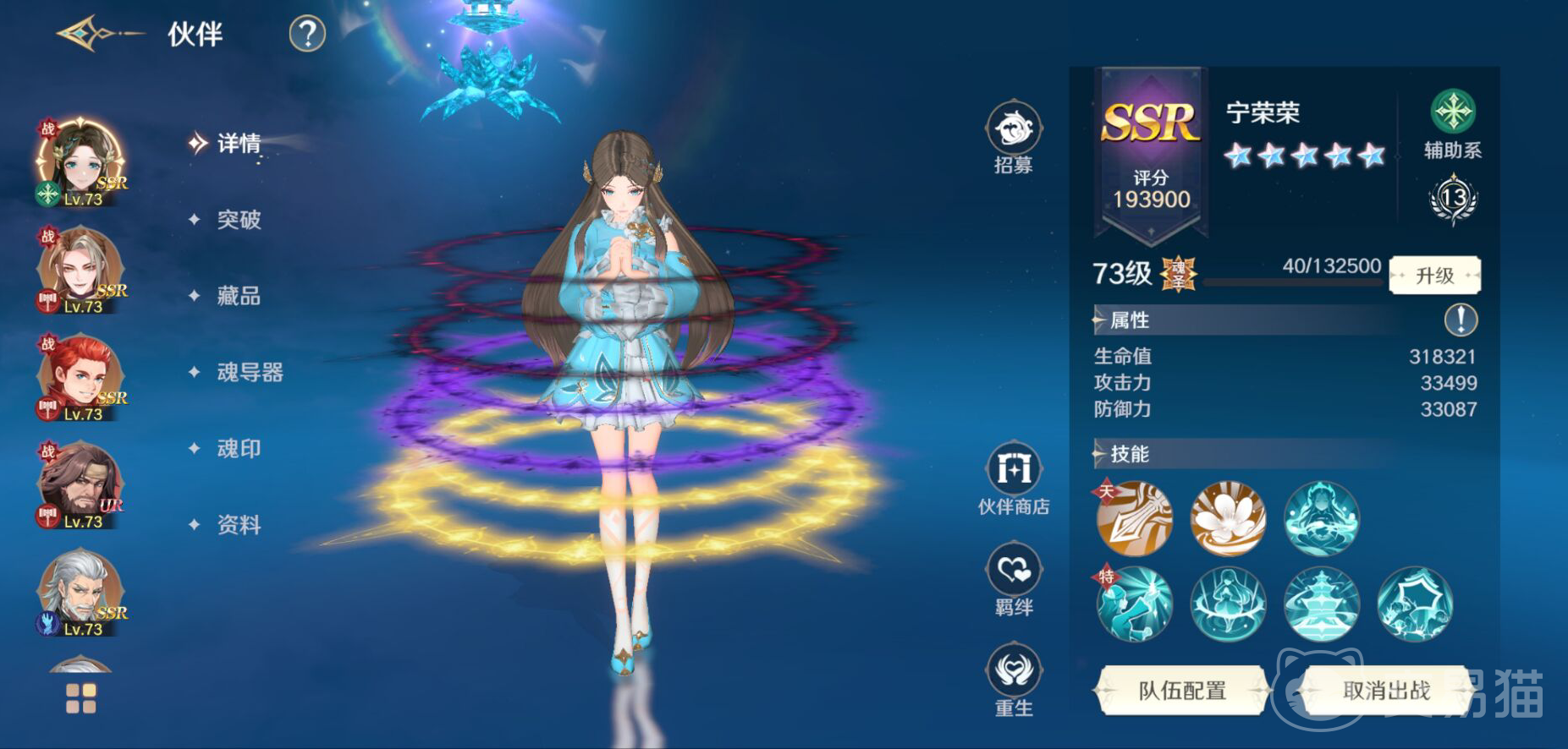 宁荣荣是一个SSR品质的伙伴,作为辅助型角色,她是队伍续航和生存的重要支撑,不仅能让队友的生存效果提高,而且可以给队伍提供输出增益效果。”幻境能量”、”琉璃幻境”就是她比较关键性的技能了,这些技能都能够给己方提供持续的攻击提升效果,同时也可以提高队友的物理防御能力,将队伍整体的作战水准都大大提升了,尤其是在长线战斗当中,这些增益效果都是至关重要的,大幅度增强输出能力,还能让他们的生存能力提高。