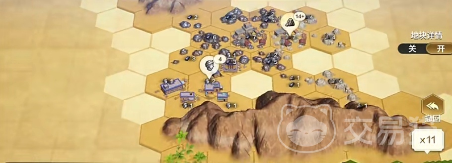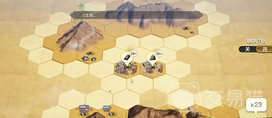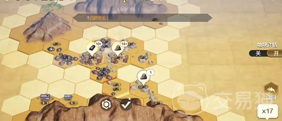 可以观察界面最上方中间的位置,在这里会显示大家目前的积分情况,在建造时,最主要的可以利用这三座大山来进行,同时还可以在上方这两座山之间进行开凿,如果将时间耗在下面来制造土地,可能会出现材料,气泡等情况,这些气泡在右边都会有数量显示。