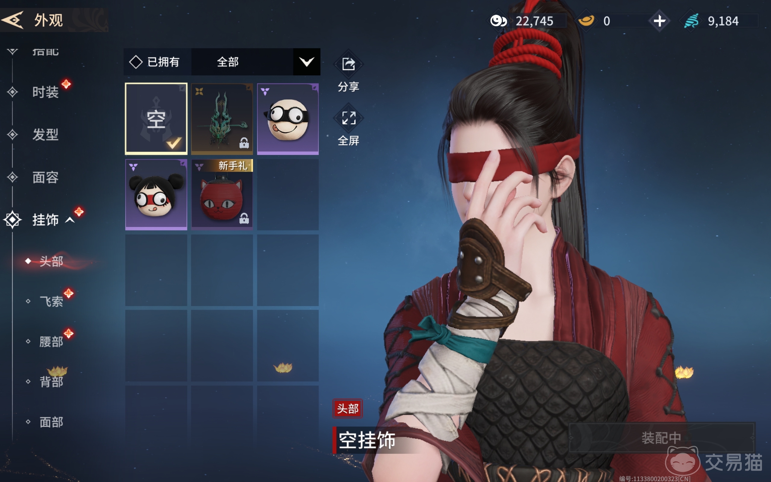 大家还可以给角色搭配各种类型的配饰,系统按照头部、飞索、腰部、背部和面部进行划分,你想更换哪个区域的饰品,直接点击对应的分区即可。