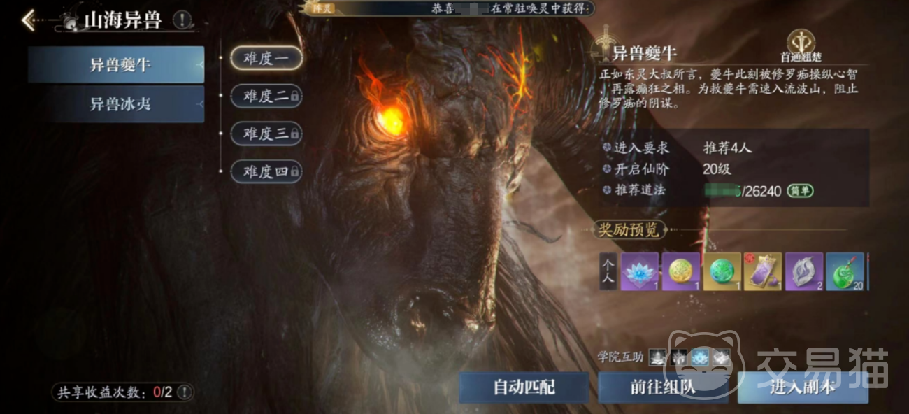 诛仙2手游异兽夔牛怎么打 诛仙2手游异兽夔牛通关攻略