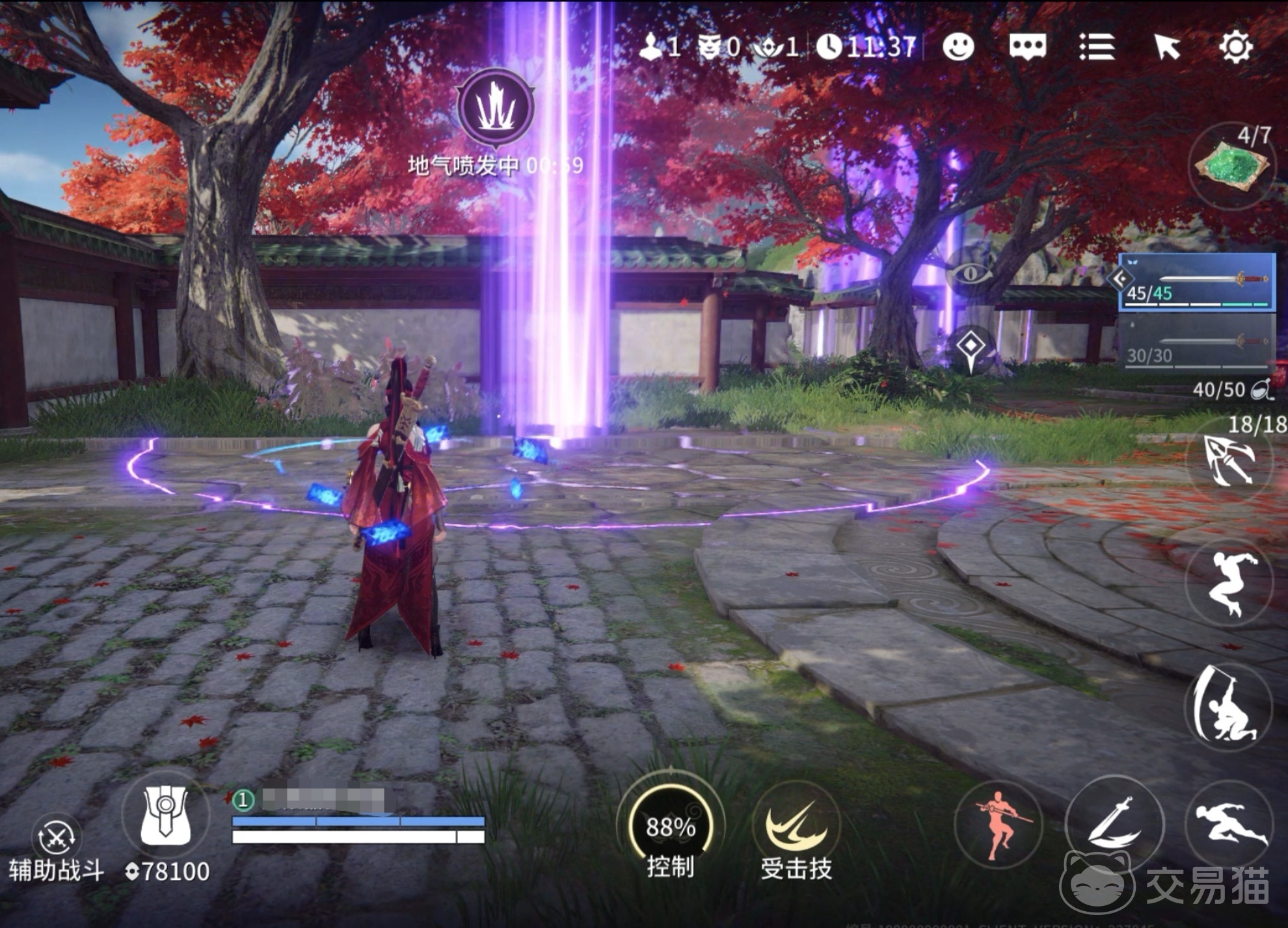 在游戏的设定中,每一次比赛都会随机出现地气,在出现的时候,地图上会用紫色来显示地气的范围,屏幕上还会出现地气的倒计时,提醒玩家要注意自己的位置,避免被突如其来的地气攻击,在与对手交战时,你也可以有意地将其引到地气喷发的地区,用地气消耗对面的血量,进而将其击败。