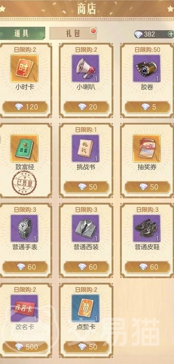 前期必买火车票(这是绝对要优先购买的)、魅力道具、人参、普通西装、普通皮鞋、普通手表、经验卡。此外,玩家们还可以根据个人的游戏需求,适量购买一些其他物品。
