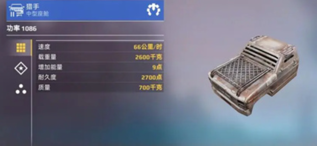 第五个就是发电机,提高战车的电力上限,从而提高战车的性能,不至于经常出现缺电导致性能下降的问题,第六个就是引擎,可以直接提升战场的容量以及最大速度,比较适用于重型战车,可以装备更多强力的武器,而且速度也能得到进一步的提升哦!