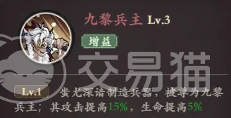九黎兵主:蚩尤深谙制造武器之道,被尊为九黎兵主。他的攻击力提升15%,生命值提升5%。这个被动技能为蚩尤提供了稳定的属性加成,既增加了他的输出能力,又提升了他的生存能力。使得蚩尤在战斗中更加持久和强大。