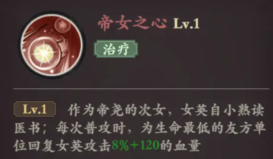 帝女之心(被动):女英在每次普攻时,都会对己方生命值最低的英雄进行治疗。这一技能进一步增强了女英的治疗能力,使得她在战斗中能够更加灵活地应对各种情况。