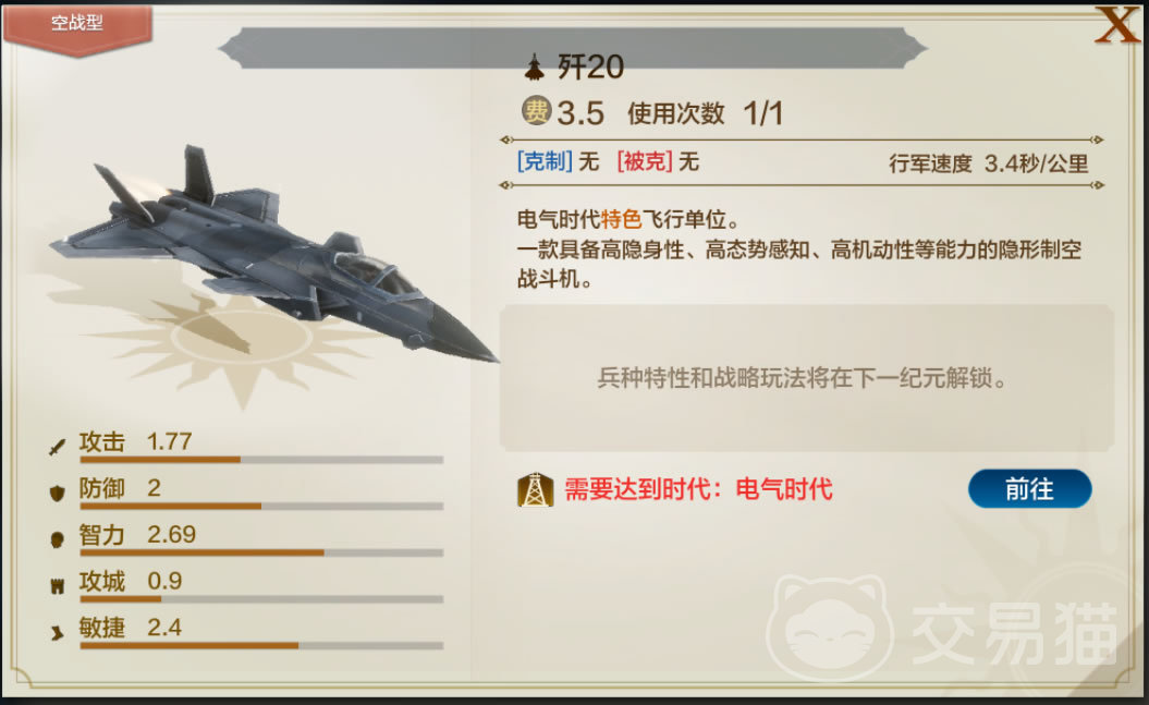 当然游戏中是真实存在歼20兵种的。在发展到电气时代时,空军战斗单位中最强的对空兵种就是歼20。在国之大器的加持下,一切侵略者都不足为惧。