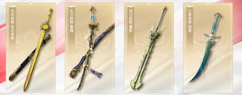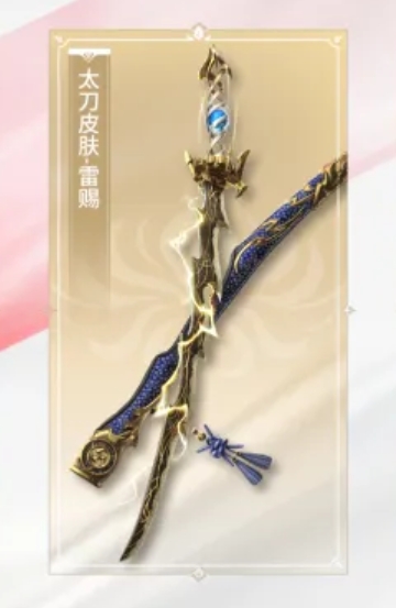 首充6元的自选礼包中包括了四款皮肤,长剑皮肤-含光承影、太刀皮肤-雷赐、阔刀皮肤-暮影以及匕首皮肤-残霄,其中太刀的雷赐皮肤无疑是最为抢眼的,因为它自带雷电特效,这是其它三款皮肤所没有的,雷电特效不仅令武器外观更加炫酷,还能在战斗中带来视觉上的震撼效果。