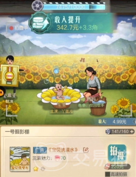 玩家可以通过这种方式拓宽自己的收益,但是需要注意的是在游戏里想要拍摄电影的话,首先需要有够的人才,人才越多,电影的收益越高,虽然可以用招揽艺人的方式补充人才的空缺,但这些艺人的能力水平一般,无法给电影带来较高的收益,初期可以选择的电影类别会比较少,可以去进行电影棚的升级,等级提升之后可以选择的剧本内容就越来越多。