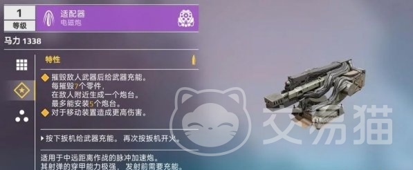可以这样说每当适配器摧毁一次敌人的武器以后,它就可以为自己进行一次充能,最主要的是当它摧毁的武器配件数量上升到7个时,还可以自动生成炮台,对局中,它生成炮台的数量最多为5个,这种独特的设计进一步增强了武器的火力覆盖面积,还大幅度使武器的生存能力得到了提升。