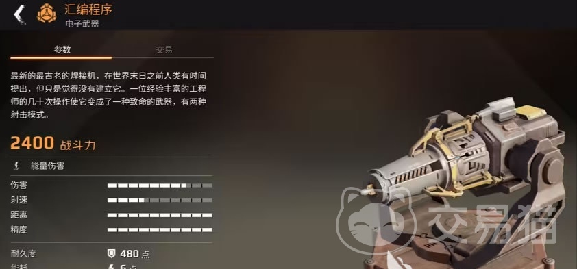 汇编程序是一种电子武器,这种武器是一种比较古老的焊接机,在世界末日还没来之前就已经有人类科学家提出了这种武器的构思,但是当时并没有得到重视,在世界末日到来之后,有一位专门负责武器制造的科学家想到了这个构思,经过十几次的反复重复实验,终于把武器给制作了出来,这是一种带有两种不同射击模式,有着致命伤害的武器。