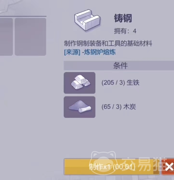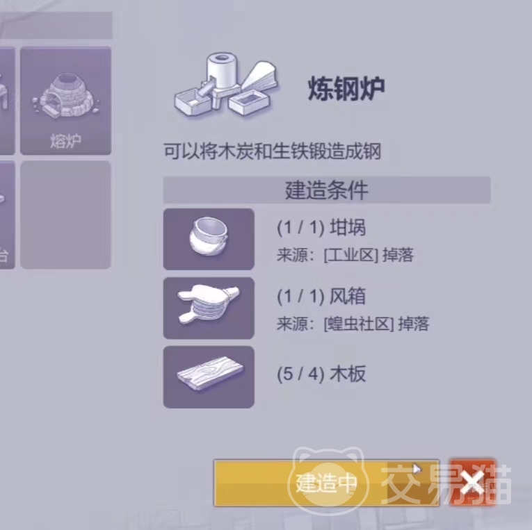 然后可以进行铸钢,铸钢在游戏后续可以作为制作钢制装备和工具的基础材料,是一类关键性建筑材料。