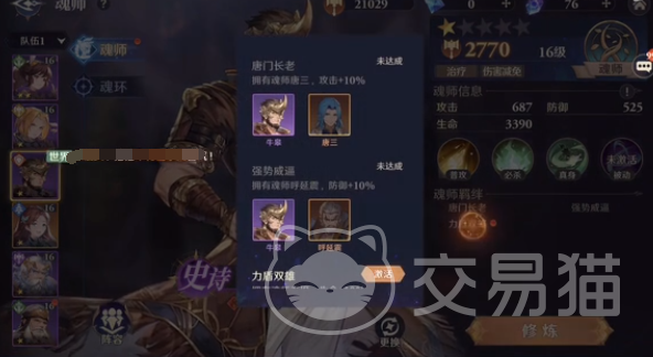 这就是一个魂师,实力非常的不错,攻击达到687,防御达到525,生命值达到3390。在体验这一个角色时,还需要注意会有很多的魂师羁绊,例如唐门长老还有力盾双雄。意味着一旦在激活羁绊之后将拥有较好的效果是玩家不可以忽视。
