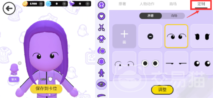 当小伙伴们进入游戏之后,可以直接在主界面的最下方看到编辑形象这4个字,点进去之后就是小伙伴们的捏脸界面了。然后小伙伴们看望屏幕的右上角在这里有一个定制选项,点进这个定制选项之后,大家会发现游戏中可选择的眼睛的样式还是挺多的,无论小伙伴们喜欢甜美一些的风格,还是高冷一些的风格,在这里都可以找到哦。