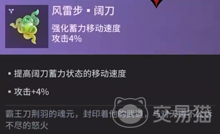 然后是烈火斩阔刀,这个魂玉同样提供了4%的攻击力加成,它的魂玉效果让一段以及二段蓄力招式附带火焰燃烧的增益伤害,这增加了阔刀的持续输出能力,对于消耗对手非常有用,而第三个风雷步阔刀则注重提升玩家的移动性,它增加的也是4%的攻击,但是在后面的效果中主要是通过蓄力的状态来提升移动速度,这种搭配更适合喜欢快速移动来提升灵活性的玩家。