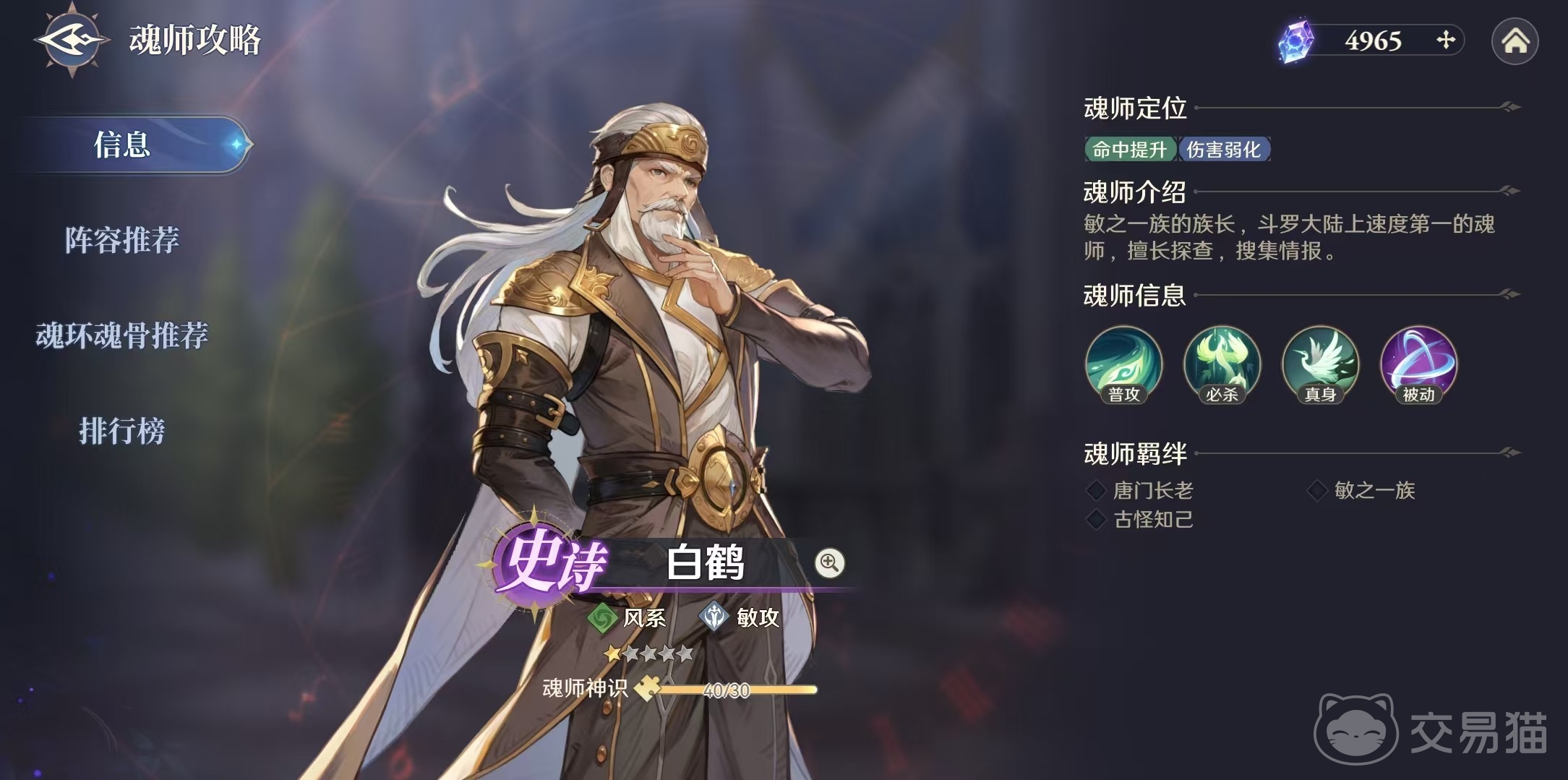 对于玩家来说,在斗罗大陆逆转时空中最重要的事情就是了解每个魂师的特点,并融入相应的阵容中,白鹤就是很值得研究的一个人物,小编今天就来讲一下斗罗大陆逆转时空白鹤怎么样。虽然白鹤并不属于最顶尖的橙色魂师一类,但是在史诗级魂师中也是很有特点的一个,如果技能搭配合适,完全可以发挥作用。