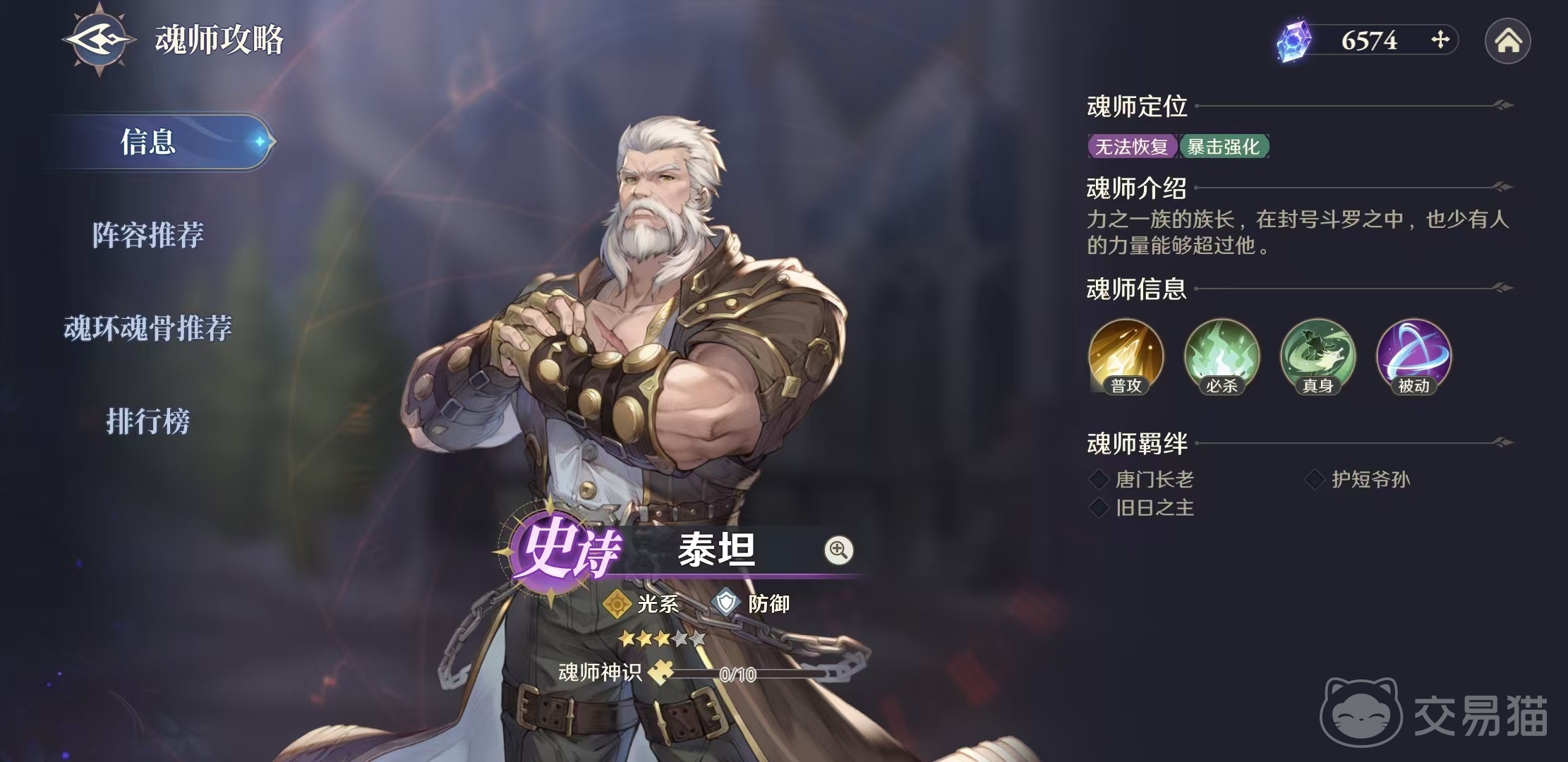 在斗罗大陆逆转时空中泰坦是属于光系的防御型魂师,他作为力之一族的族长,即使在封号斗罗中也属于力量很强的存在,小编今天来讲一下斗罗大陆逆转时空泰坦怎么样。作为肉盾作用当然是去吸收伤害,在阵容搭配的时候,肉盾也是不可缺少的位置,如果缺少了防御系魂师,其他队友就会非常脆弱。