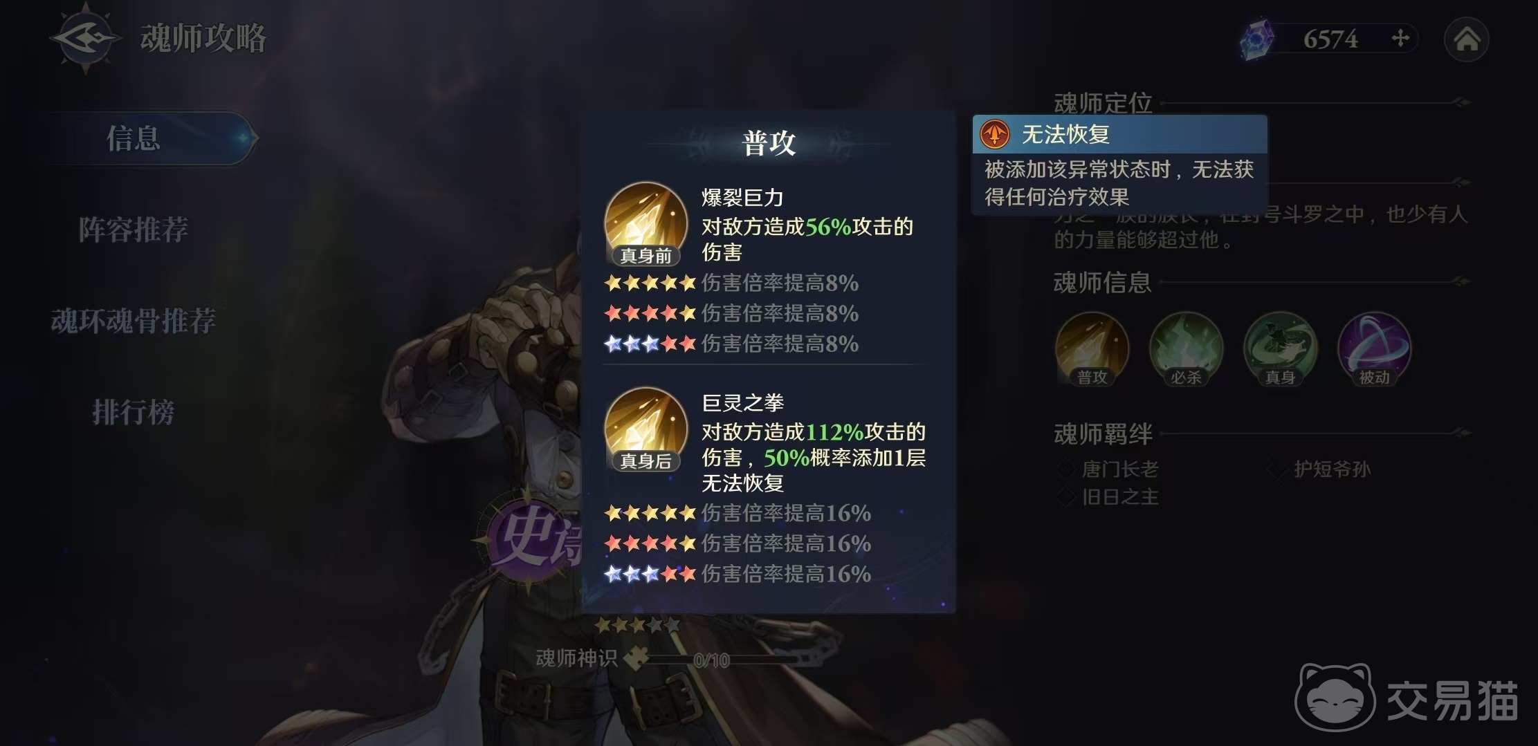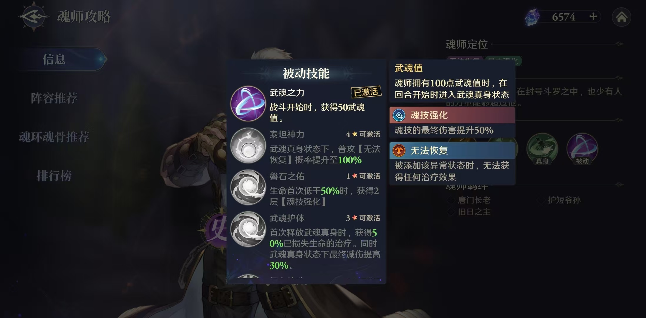 泰坦的武魂真身是大力猩猩,在武魂真身释放之后,暴击伤害强化40%,虽然是防御魂师,但提升的却是暴击伤害,这一点使其在定位方面出现了一些模糊。自身的普攻在武魂真身之后,除了可以对敌方造成伤害之外,还有50%概率为其添加一层无法恢复,被无法恢复影响之后将不会获得任何治疗。这对于一些走续航流的对手来说,绝对是很大的打击。