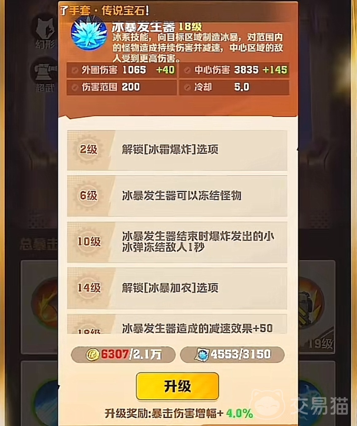 冰爆流比较核心的几个技能冰霜加农技能解锁前置为冰雹发生器+冰雹延续+冰雹地带和旋风加农,基本上是玩家后期才能解锁的一个进阶技能效果,而和干冰弹解锁的冰霜爆炸和冰系缩减也都能够提升控制的效果和范围,冰爆范围增伤宝石可以大大扩大控制范围。干冰带伤害增加宝石作用并不大;干冰弹命中可以穿透宝石任何属性都没啥用,对于初始发射鞋子宝石其实和枪械流的齐射是一个道理,如果搞不到至尊CD鞋的话可以先用着。