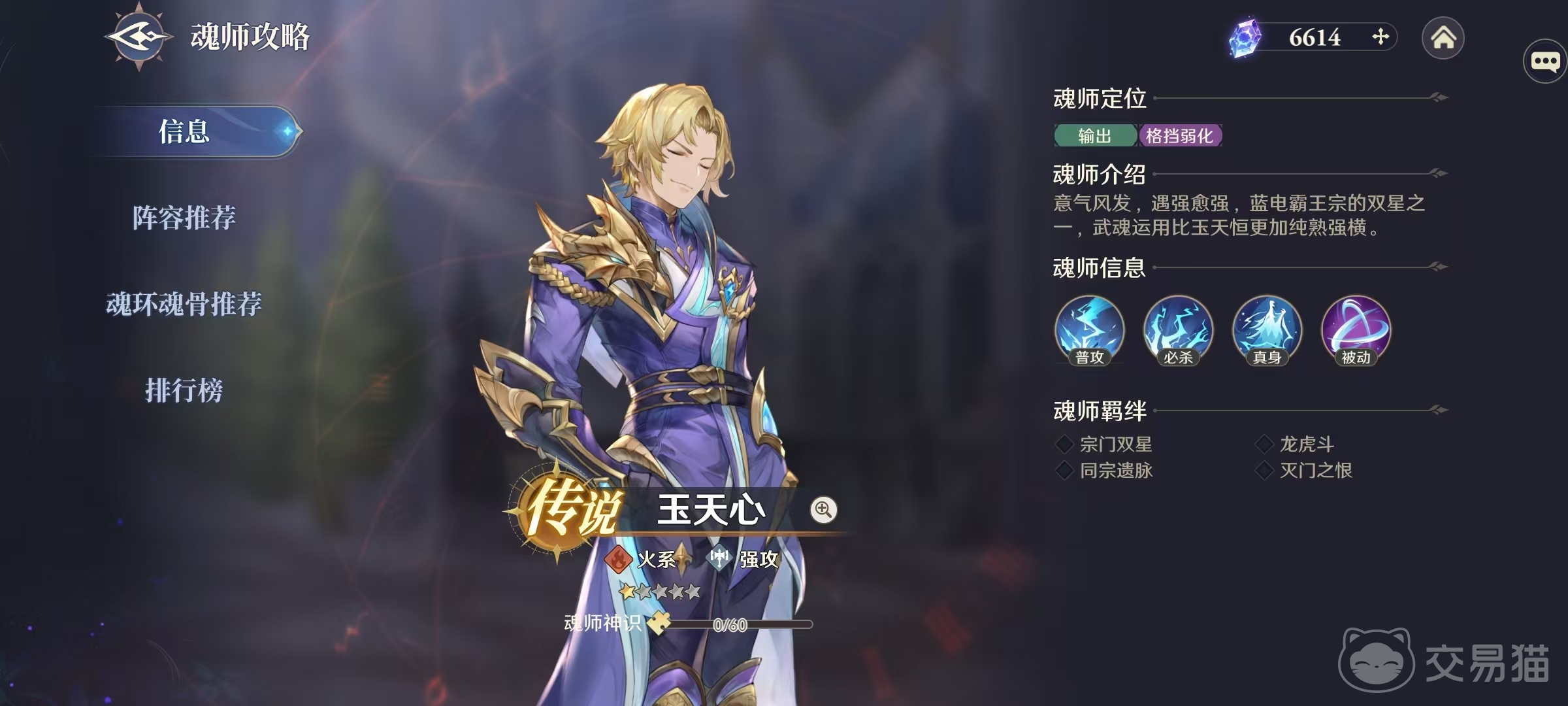 玉天心属于蓝电霸王中的双星之一,在武魂应用方面成熟强横,要比另一个史诗品质的玉天恒更加出色,今天小编来讲一下斗罗大陆逆转时空玉天心怎么玩。玉天心属于火系的强攻魂师,自身除了输出很可观之外,还有格挡弱化特点,这些都是有助于打出伤害的效果,具体技能以及该如何使用一起往下看。