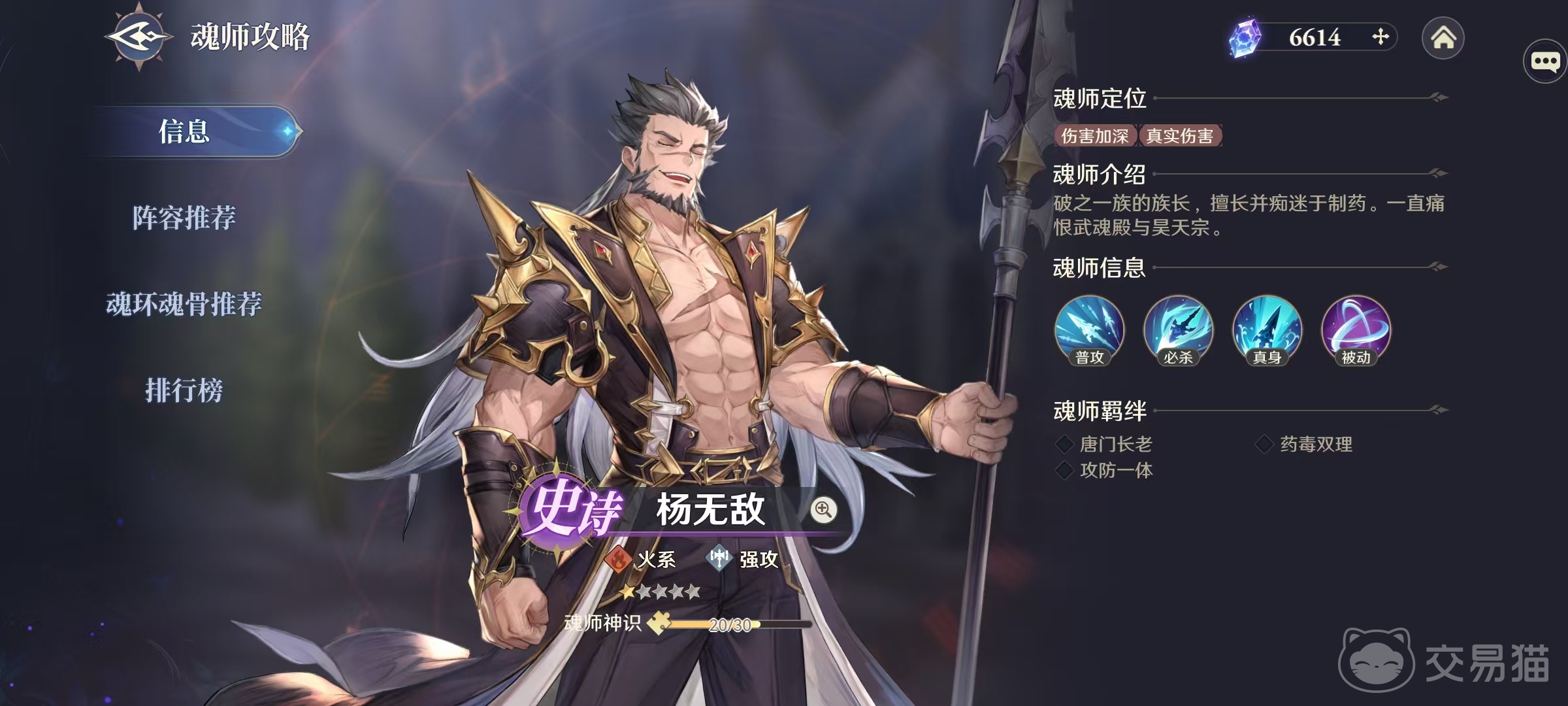 杨无敌虽然属于史诗品质的魂师,但是他在攻击方面却非常有特点,带有伤害加深、真实伤害等一系列标签,所以在输出方面也是很值得研究的,今天小编就来给大家分析一下斗罗大陆逆转时空杨无敌好用吗。杨无敌作为破之一族的族长,武魂为破魂枪,在战斗中可以打出很犀利的输出。