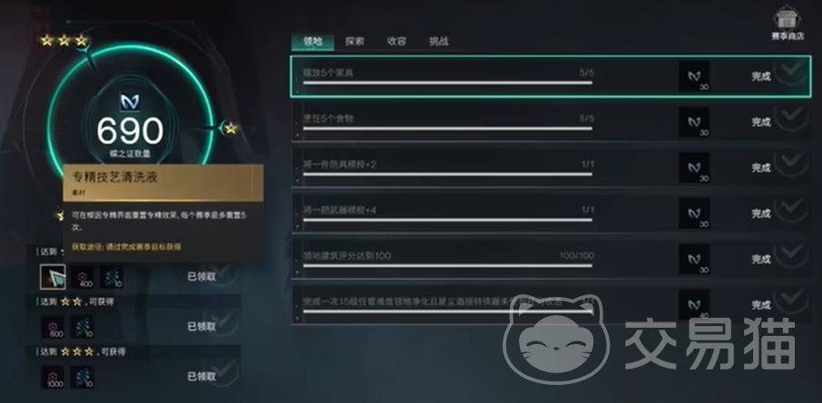 玩家在游戏过程中,可以通过完成赛季目标来获取,如击败特定数量的敌人、收集特定资源、完成特定建筑等。每个赛季目标都有一定的难度和挑战性,但完成这些目标后,玩家将能够获得包括专精技艺清洁液在内的多种奖励。