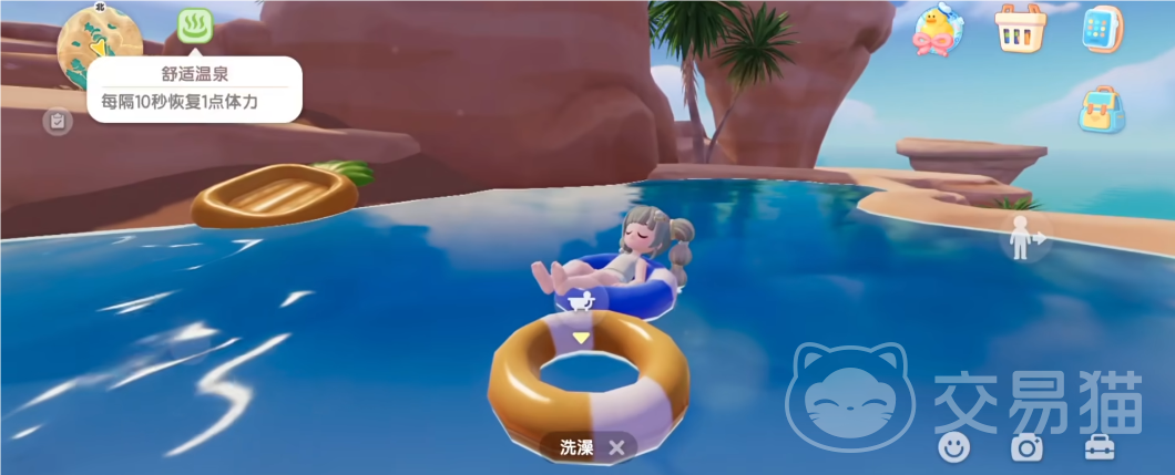 如果是在室外的话,也是可以通过休息的方式去恢复体力。室外可以供玩家通过休息以此来恢复体力的地方并不少,一个是温泉山湖里面的温泉,一个是沙滩上的泳池,如果玩家背包中有咖啡伞的话,点击使用也是可以恢复体力的,如果没有的话去找一些在线的其他玩家蹭一下也不是不行,这样一来既可以恢复体力也可以顺道交个朋友,上述的体力恢复方法,除了温泉是每十秒增加一点体力之外,其他的都是每五秒增加一点,非常方便。