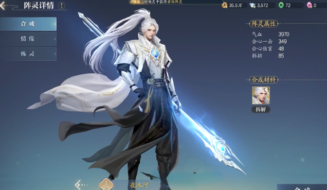不过还是需要提醒玩家一点,目前该角色非常建议玩家去和其他阵灵进行搭配使用,如夜冰河,夜冰河这个角色的血气可刷新到3970,并且会心一击的伤害率也达到了349,配合晴浪一起使用还可以激发相应的情缘技能,实现额外暴击,能够为玩家在短时间内快速拿下对决的胜利。