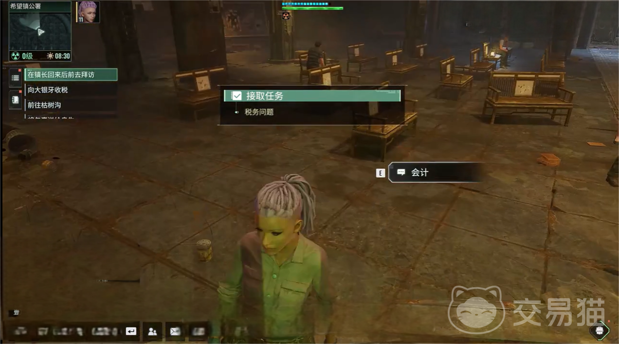 玩家需要先前往希望镇公署找到负责税务问题的会计,通过与其对话来接取“税务问题”这一支线任务,下一步便是前往希望镇镇区找到大银牙,向其收纳需要缴纳的税,通过与其对话后,玩家需要前往大牙拆卸场中,帮大银牙消灭其中的怪物并且将钱箱取出来,便可进入到任务的下一阶段。