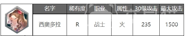 西奥多拉在游戏中属于一位既稀有又充满活力的女骑士,定位也是战士角色,稀有度不算高只有R,所以很多的新手都会用到这个角色,本身所属的属性是火,在基础数值上面最大的攻击数值可以达到1500,西奥多拉的技能组合提供了均衡的输出能力和控制效果,所以她在战斗中能够灵活的对战。