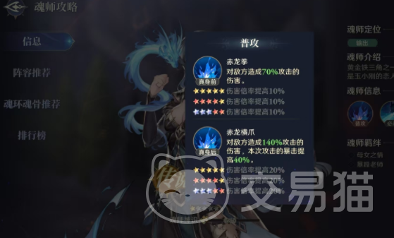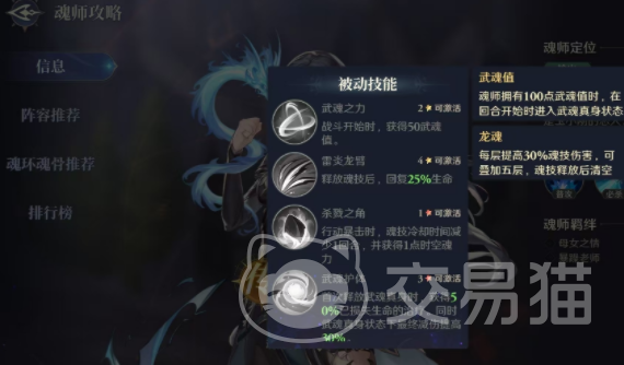 柳二龙在游戏里相对来说是比较强力的一个角色,在游戏里角色的武魂是火龙,所以在对战的时候可以使用火属性的攻击,即便在常规的战斗下也可以去叠加一层龙魂,这样角色就可以在对战的时候产生双重的攻击能力,每一层龙魂都会叠加相应的伤害,最高有30%,角色可以通过叠加5层龙魂释放出超强的战斗能力。