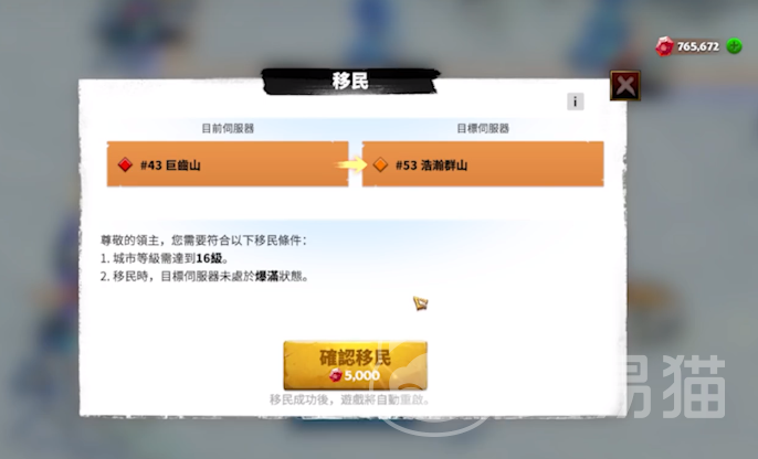 想要在游戏里移民是需要有一定条件的,首先玩家自身的城市等级需要达到16级,并且在移民的过程中是需要消耗相应宝石的,而且需要在限定的时间内移民才可以,移民次数是不受限的,这就比较要求玩家所拥有的宝石数量,如果宝石数量不足的情况下,就会导致无法继续移民。
