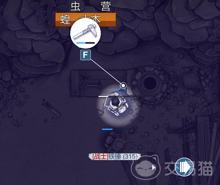 森林里面我们现阶段是无法捕猎到兔子的,所以玩家们不要想着猎杀兔子了。除了兔子外的小动物都是可以进行捕猎的。玩家们需要先去往中间左边的区域,这里可以看到一个采石场和矿场,里面有几个蝗虫组织成员,我们优先解决远程的敌人,在解决之后便可以在此地进行挖矿了。