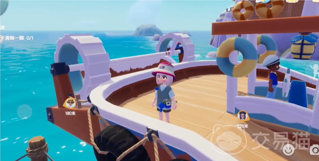 第六个的位置大家可以先打开地图,看到右下角有一个区域叫做跳跳版,第六个泡泡就是在这个地方,来到这里之后我们会看到一个蓝色的小房子,房子的顶上面就藏着一个泡泡,我们首先需要跳到围栏上面,然后直接长按跳跃键就可以跳到房顶上面顺利拿到这个服装。第七个泡泡想要拿到的话我们先需要通过海钓主线任务才可以,解锁了海钓这个玩法之后我们直接追踪到海钓npc比尔这里,我们跟随npc出海海钓的路径上面会看到一个泡泡,我们可以直接获得,但是玩家们需要注意的是比尔会让你选择出去海钓的船只,大家一定要选一号船,只有一号船的路线会经过这个隐藏泡泡,不能选择二号船。