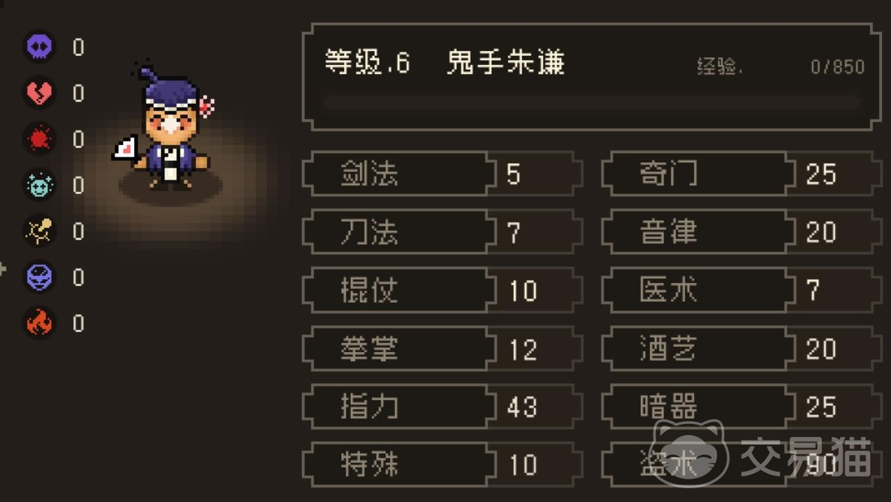 在这些天赋中,能够增加盗术是非常有趣的设定,自身武功有清凉扇法和妙手空空,其中妙手空空就是和偷盗相关。妙手空空属性是暴击率5%,暴击伤害150%,进行偷窃+90,这样偷起来就会非常方便,成功率也高。清凉扇法是属于掌法分类中的武学,攻击范围是直线四格,附加效果为暴击率5%,暴击伤害150%,20%几率封穴+5。