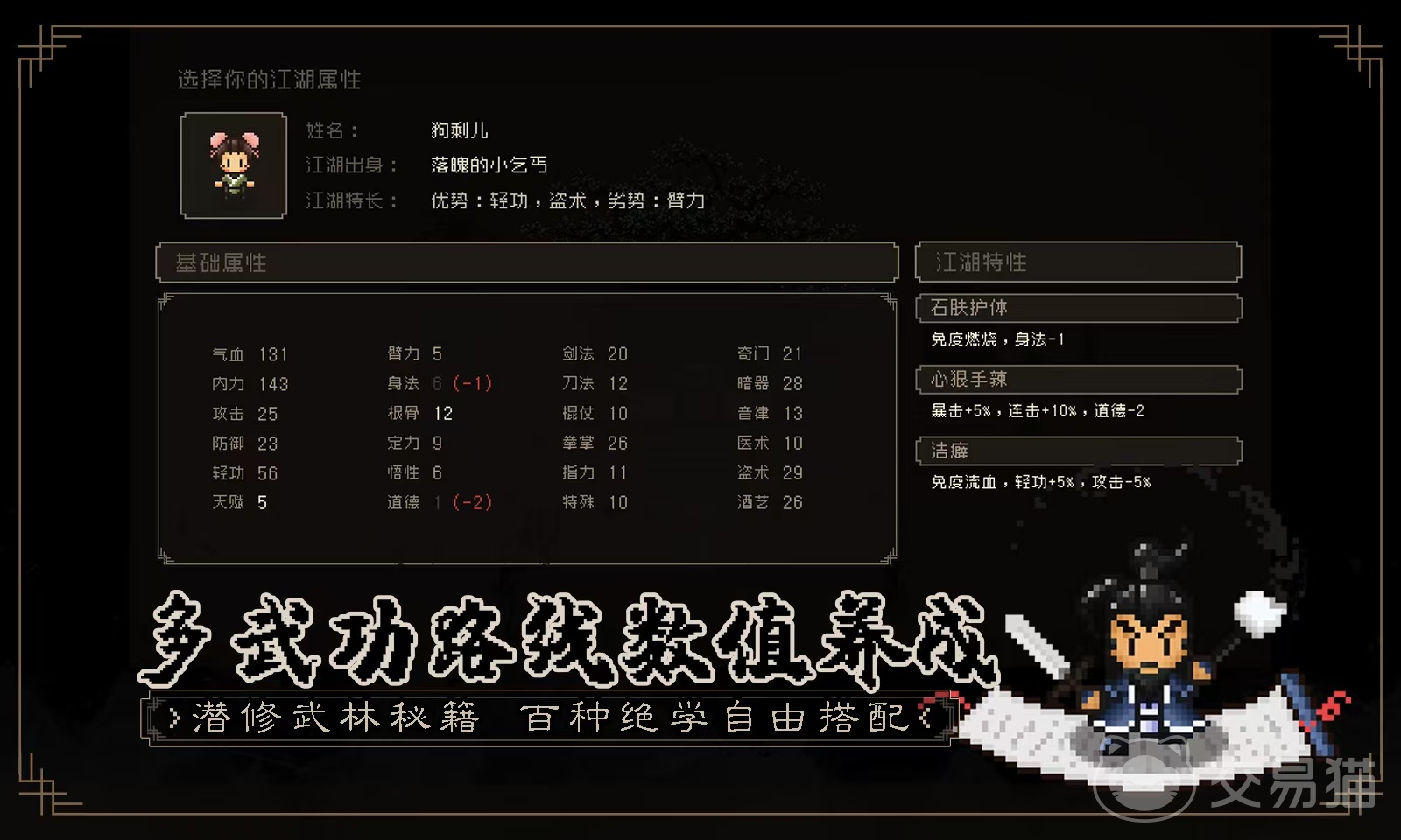 这款游戏走的并不是写实风格,而是采用像素风打造,为大家带来一个高自由度且玩法丰富的武侠江湖世界。这里面有着丰富的剧情和各种养成玩法,还需要大家投入一定的策略才能够战胜敌人。游戏的背景故事设定到了南宋绍兴十一年,这一年宋金以淮水为界,各分南北,宋朝向金国称臣,宋金虽然维持表面和平,但江湖上已经暗流涌动,出现了四位绝世高手,整个武侠故事也以此为背景徐徐展开。