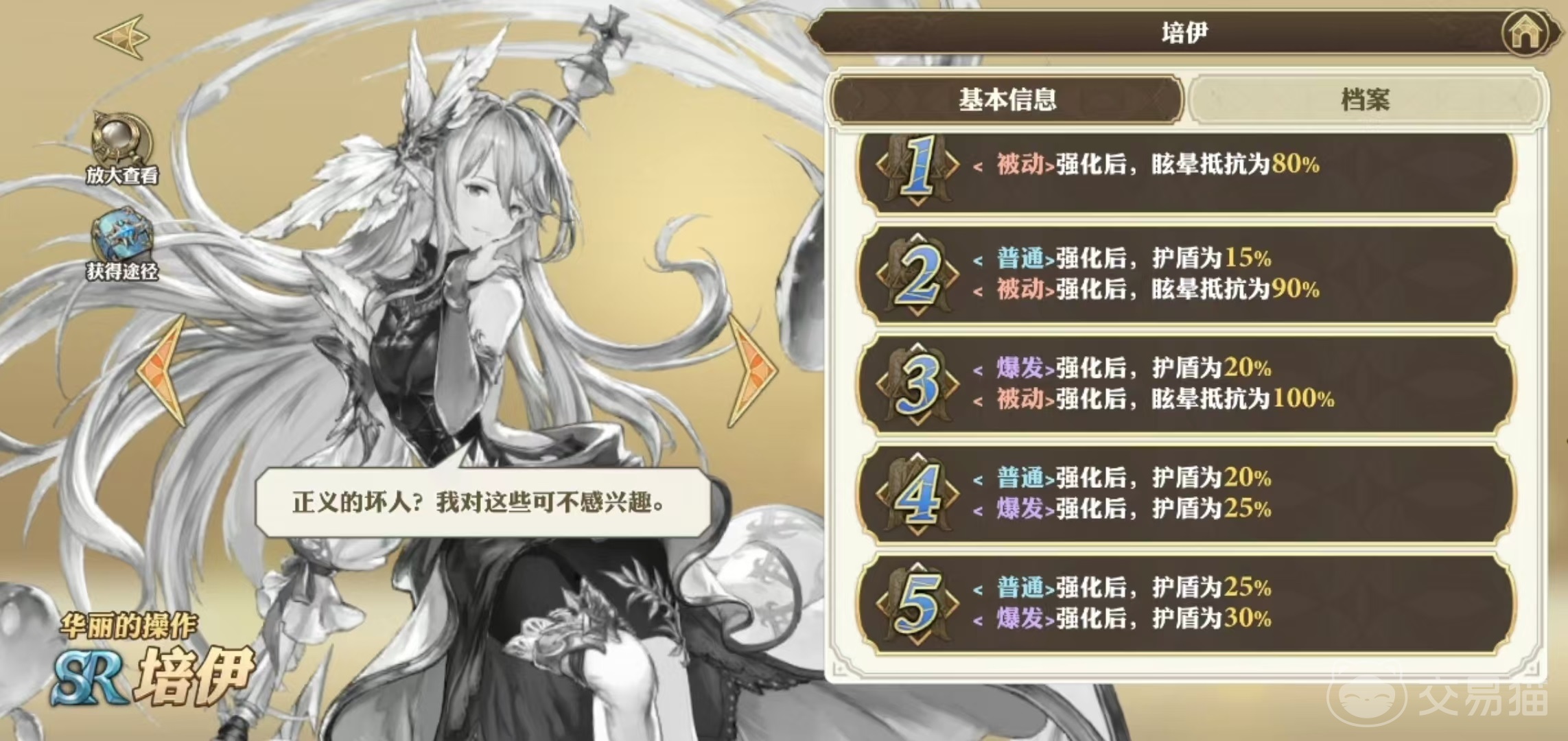 好在有一个全体生效的被动技能泡沫垫,使得所有目标对眩晕抵抗能力增加60%,如果对手有较多眩晕技能,那么培伊也是可以出战的。后续经过升星强化,对眩晕的抵抗能力还能再次加强,最多能达到100%,普攻和爆发技能带来的护盾也都能达到25%和30%。