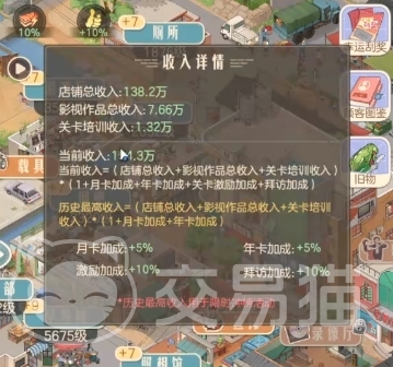 想要提高自己的每秒收益,首先要明白游戏中角色的每秒收益包括了哪些内容。从图片上可以得知角色每秒收益是包括了各个产业的收益,以及影视产业产出的影视作品收益,再加上关卡升级的收益。