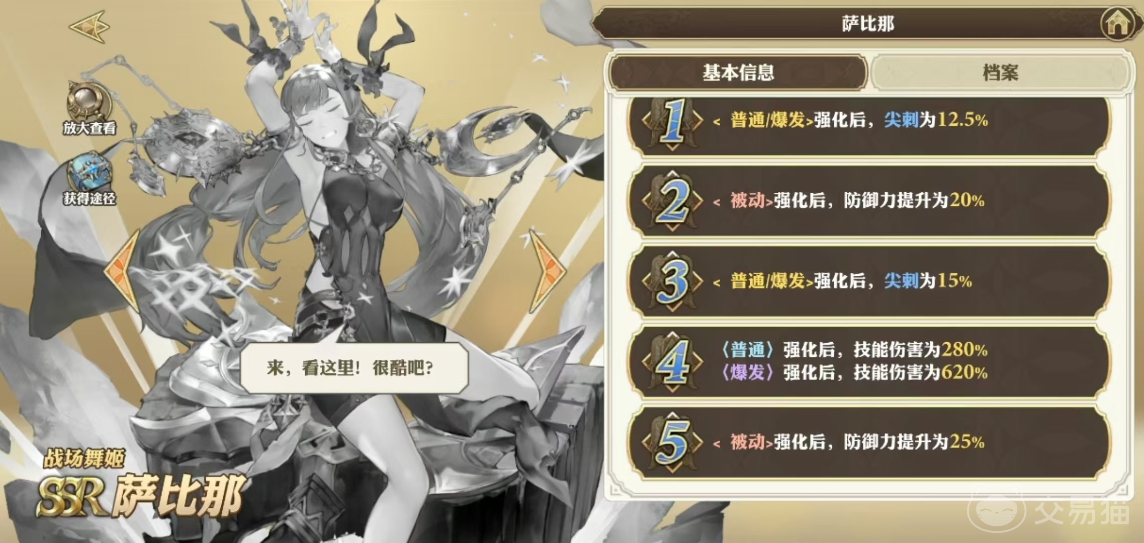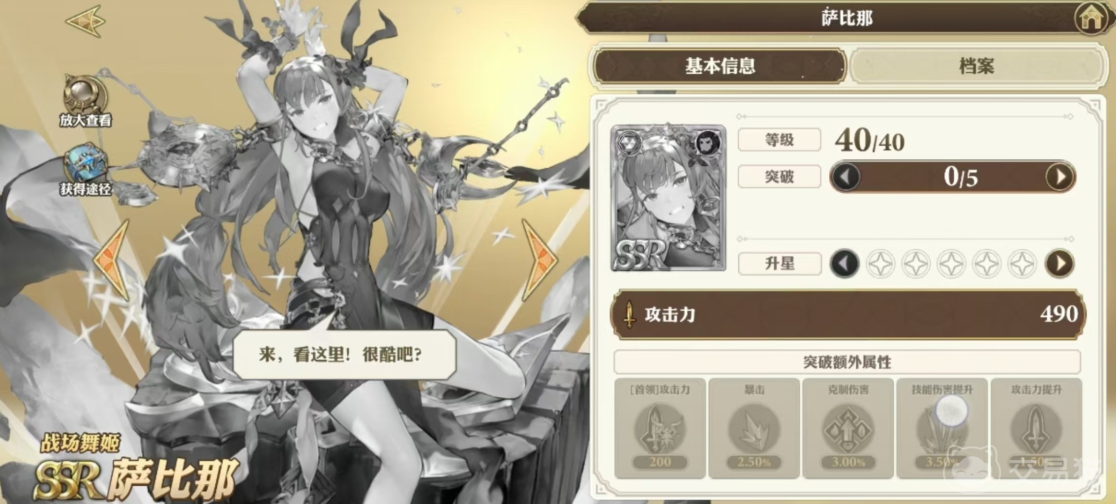 萨比那是剑与骑士团中的SSR格兰武器,号称战场舞姬,她永远处于事件中心处,有她的地方就绝对不会平静,这也展现出了自身的性格特点,今天小编来讲一下剑与骑士团萨比那好用吗。萨比那喜欢在所有事件的中心处来迎接人们的目光,坚信认可自己才能的人会找上门来,将自己从无聊中解救出去。