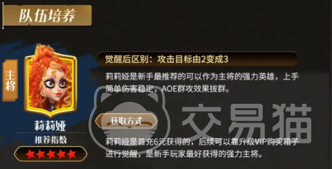 法师队的核心为莉莉娅,莉莉娅这个英雄的优势就是伤害很高,而且射程范围很远,拥有极高的魔法爆发能力,在前三个赛季基本上是不会削弱的,因此培养这个英雄的性价比是极高的,这个英雄的获取方式也很简单,只需要通过首充六元就能获得,想要玩法师队的玩家都可以选择她哦。