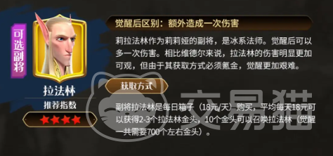 接着就是法拉林,法拉利是冰冻元素的法师,这个法师的输出能力还可以,不过还是控制能力更出色,能发动很多的控制魔法限制敌方英雄的输出能力,是目前莉莉娅的最合适搭配英雄,缺点就是有些难觉醒。
