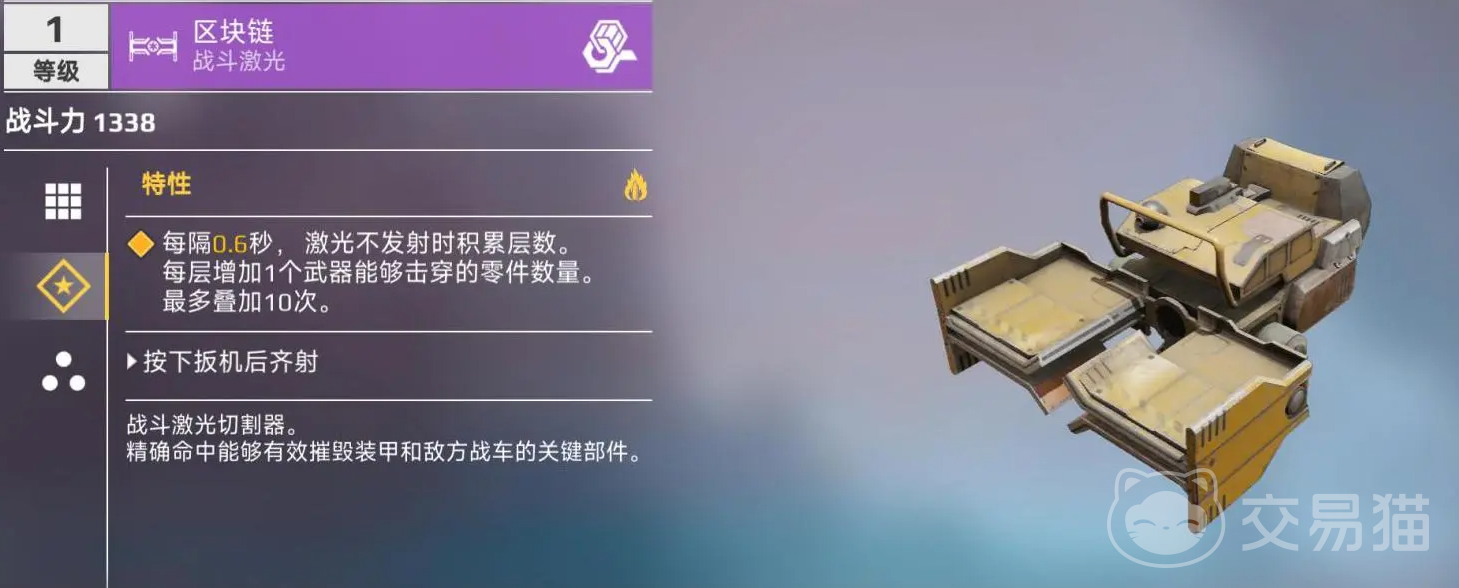 首先来给大家推荐激光系列的,第一款激光系列武器叫做区块链,它在装备后能发射出一道非常宽阔的光束,射程虽然适中,但是穿透能力十分不错,且每0.6秒都能叠一层充能,每层都能增加可击穿的数量,这个效果最多能叠加到十层,能造成十分恐怖的穿透伤害;