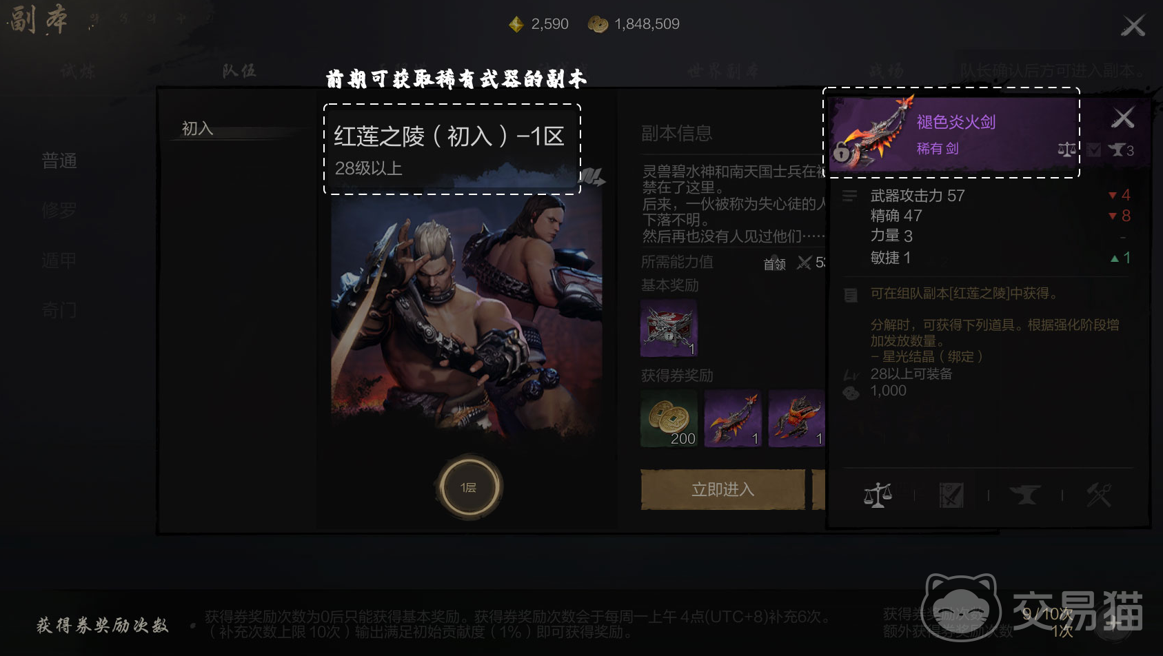 值得一提的是,侠行任务也是有可能获取到装备的,侠行任务的界面里经常会有在奖励栏里标注着被封印的装备的任务,按照任务难度,能获取到的装备品质最多可以到达紫品,这也是想获取高品质装备的一个好途径。
