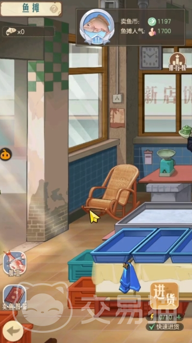 2、鱼摊。这个是一个比较辛苦的产业,需要玩家经常去进货和上架,在收益上比早餐店高;